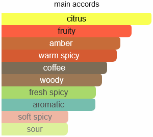 The fragrance opens with a powerful burst of blood orange, crisp grapefruit, and spicy saffron, igniting the senses with an exhilarating freshness. At its heart, a warm blend of red ginger, aromatic sage, and sweet lavender adds depth and sophistication. The base is rich and sensual, featuring notes of roasted coffee, amber, and woody accords, delivering a long-lasting and captivating finish.