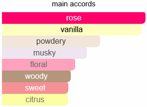 The fragrance opens with a fresh and slightly citrusy touch of zesty lemon, enhancing the delicate beauty of lush rose petals. At its heart, a decadent fusion of sweet vanilla and sugar adds warmth and a gourmand indulgence. The base is smooth and sensual, featuring soft musk and cedarwood, leaving a long-lasting and elegant trail.